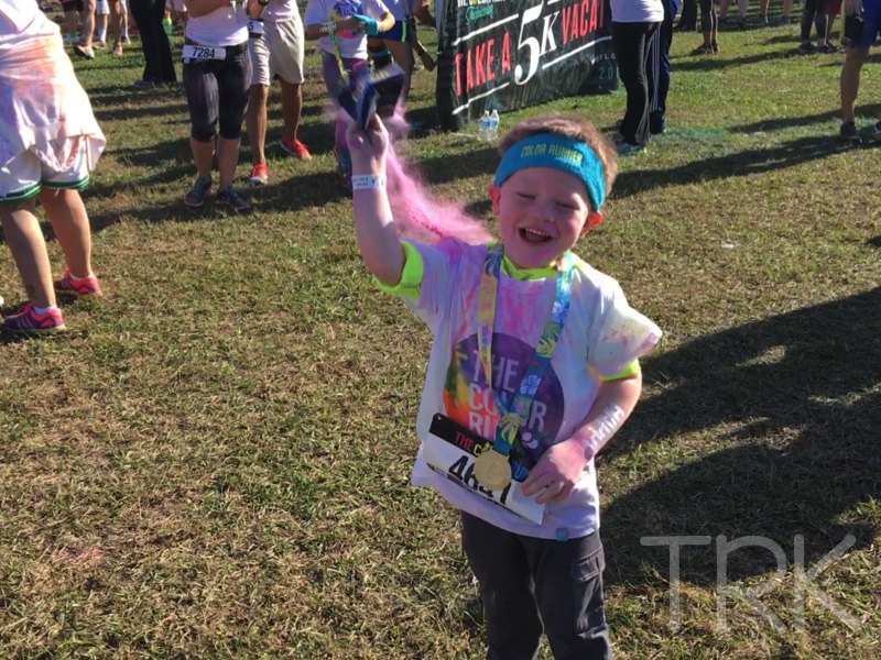He woke up bright and early on the day of the run and Tanner couldn’t wait to get his color gear on!